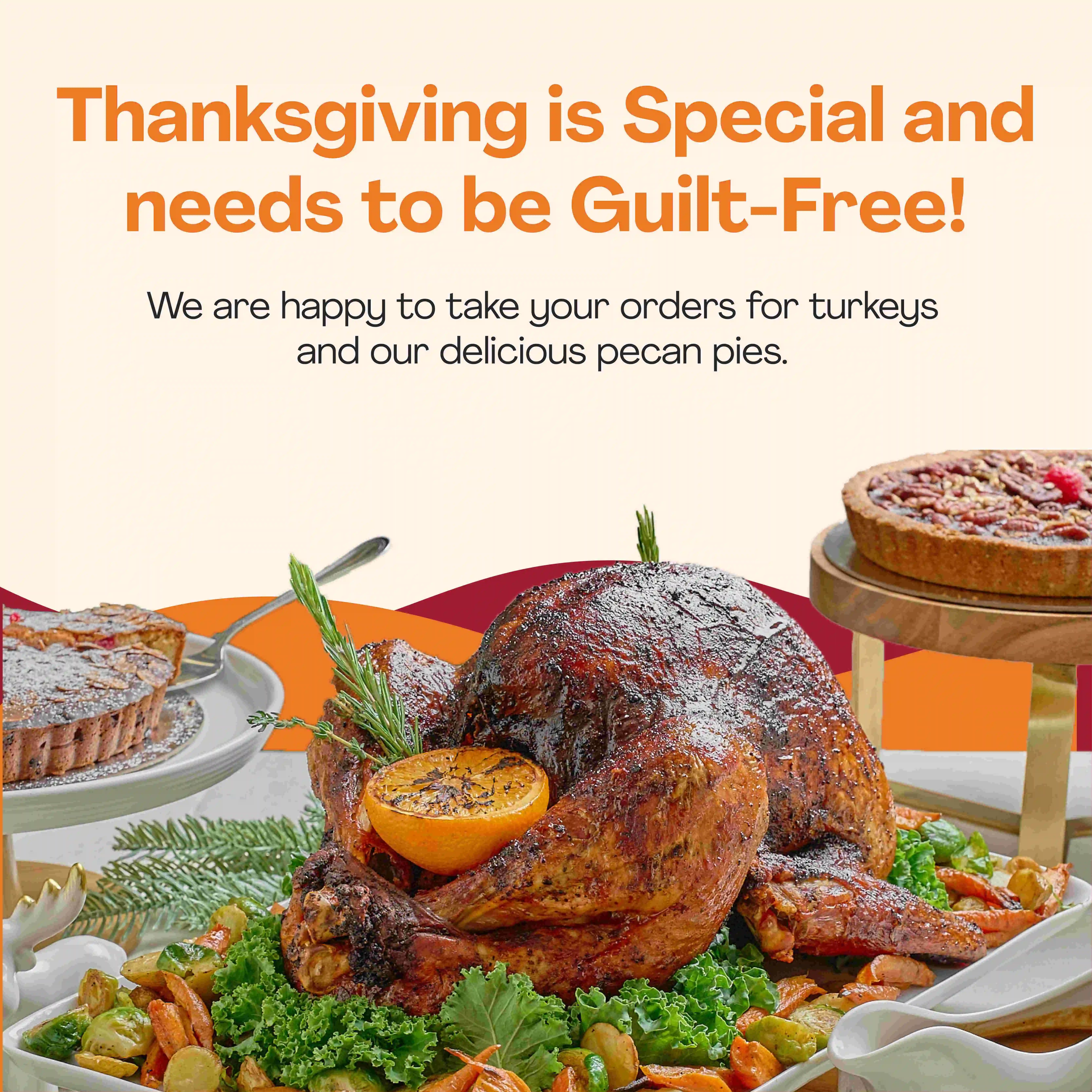 Order your free-range turkey with your choice of delicious sides and desserts.